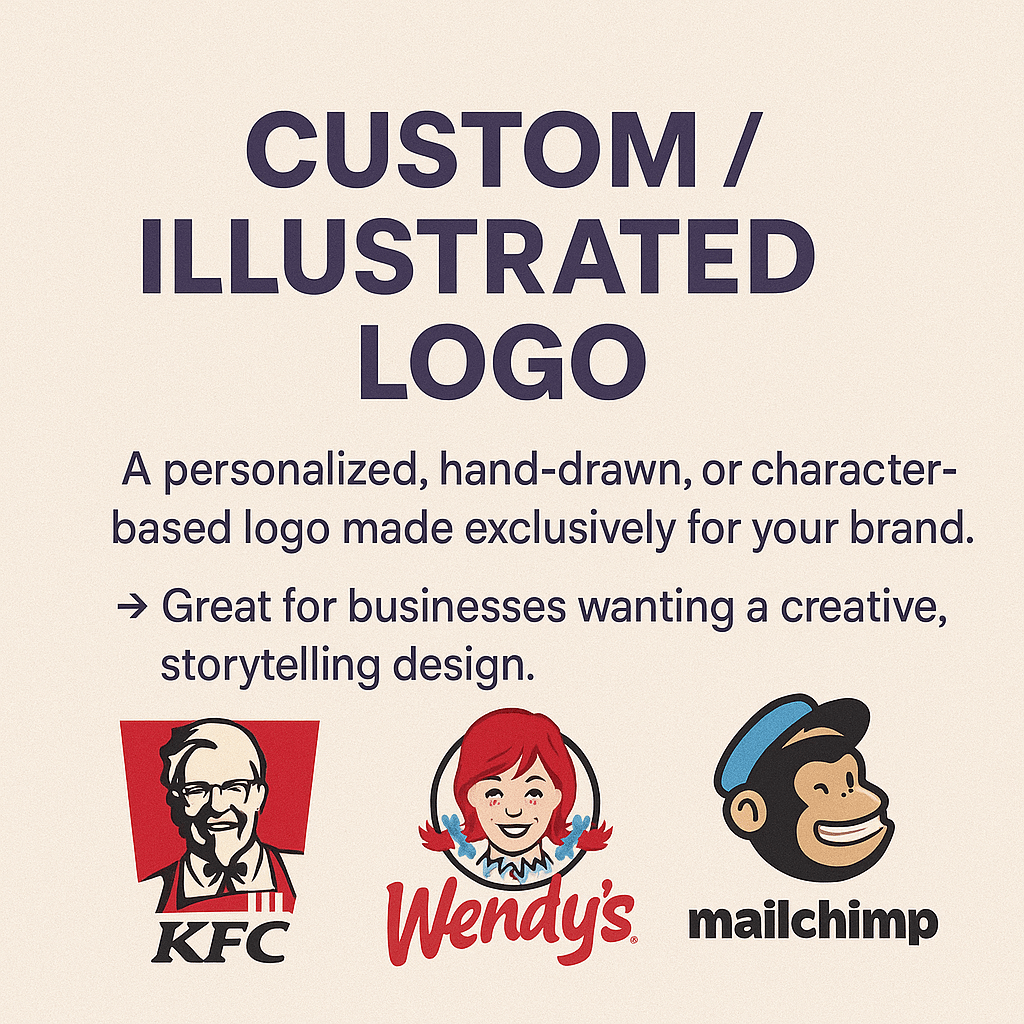 A personalized, hand-drawn, or character-based logo made exclusively for your brand.