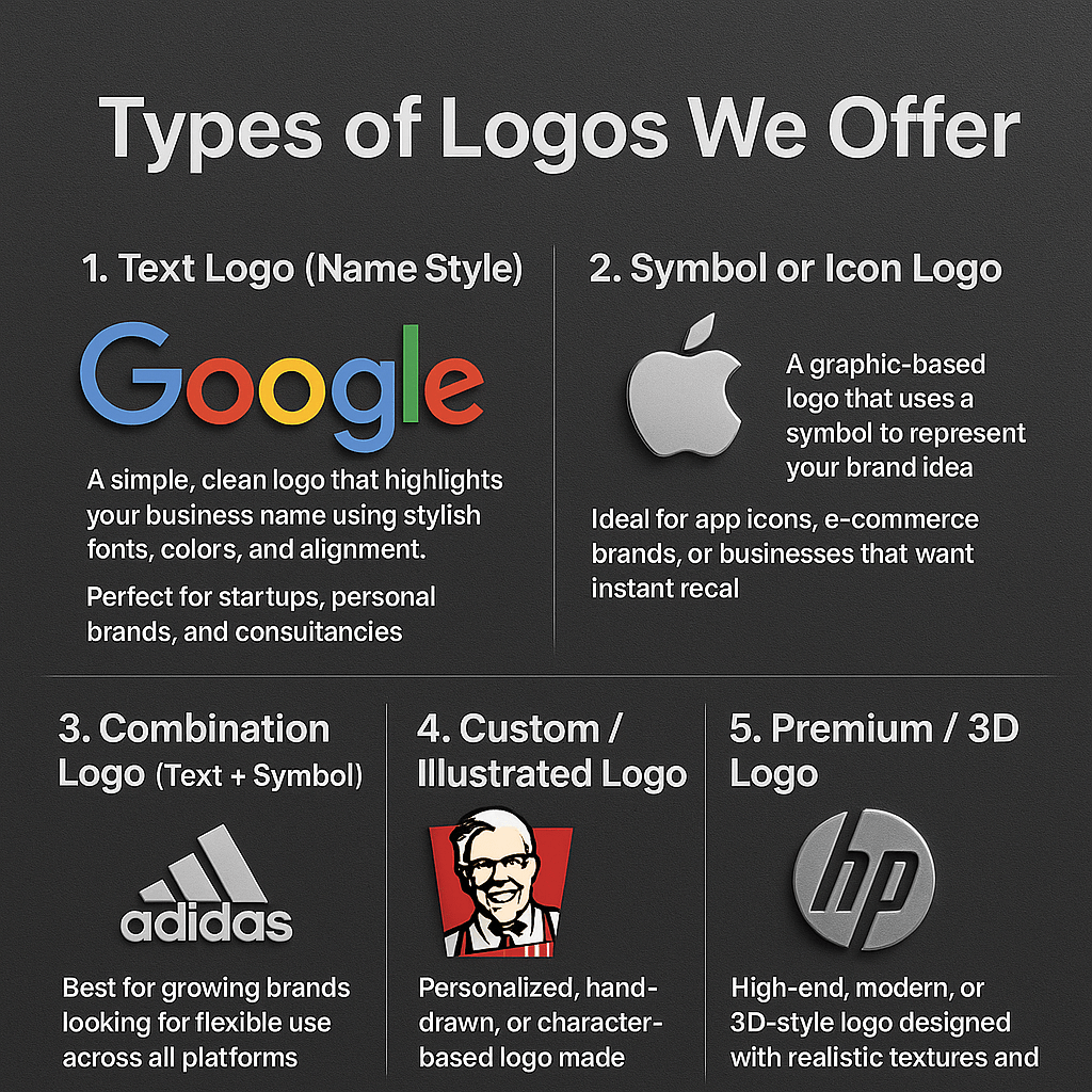 Your logo is the face of your business. Itβs the first thing people notice and the one thing they remember. A professionally designed logo builds trust, identity, and recognition for your brand β whether youβre a startup, an online store, or a professional firm.