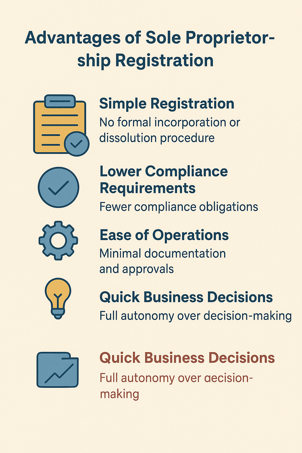 Ease of Operations: With no partners, shareholders, or directors, a sole proprietor can manage the business with minimal documentation and approvals. This makes the structure ideal for small businesses with limited operations.