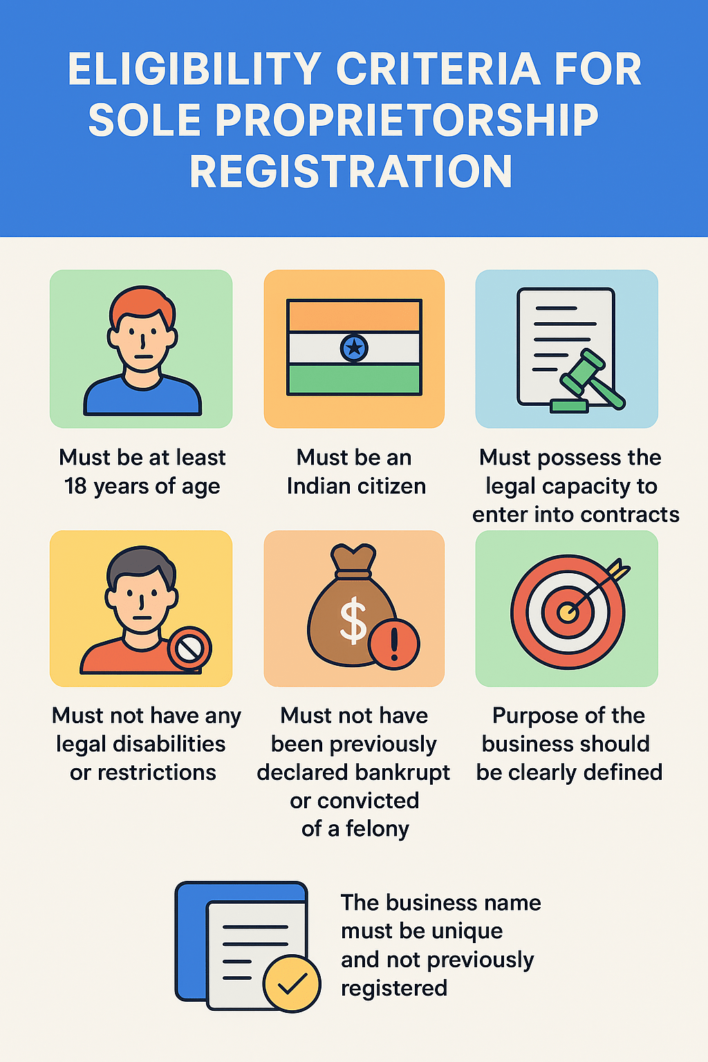 To qualify for sole proprietorship registration, the applicant must meet the following criteria:
